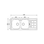 Evier inox roco style avec egouttoir carreau 1160x500mm 2 bacs plus siphon