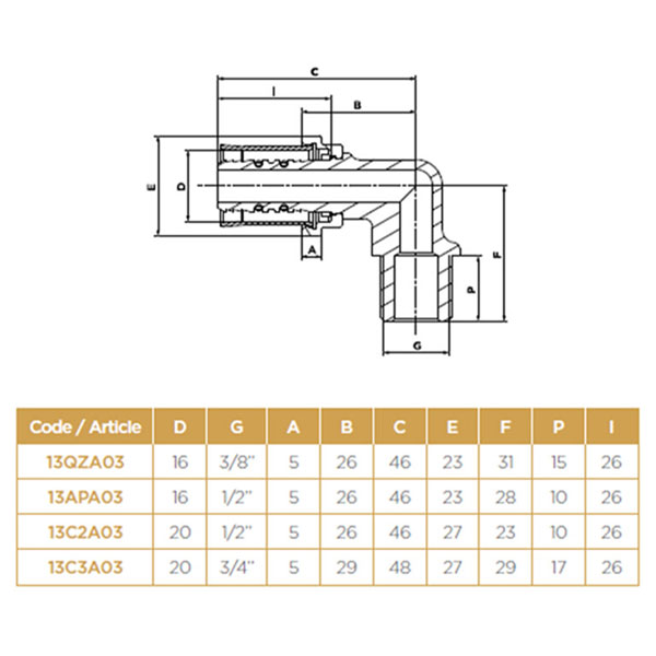 Raccord coudé 90° en laiton chromé, avec filetage mâle 3/8″ et connexion pour tube PEX Ø16 mm par système à sertir.