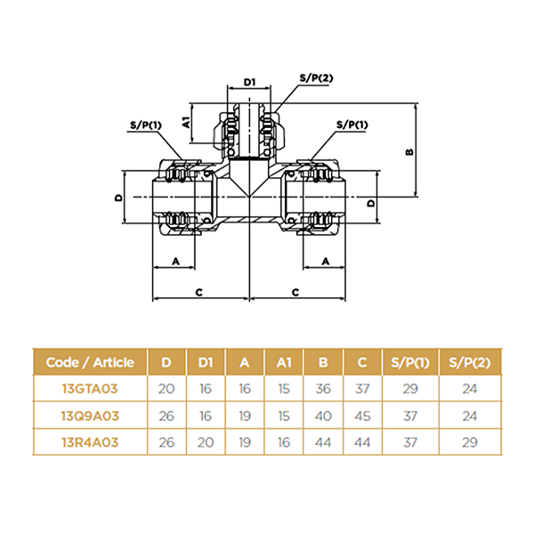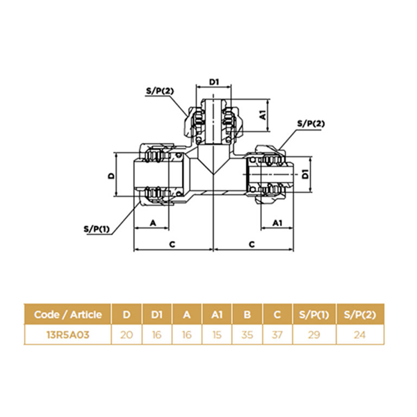 RÉDUCTION EN TE À VISSER CENTRALE PEX 20-16-20 SOPAL