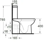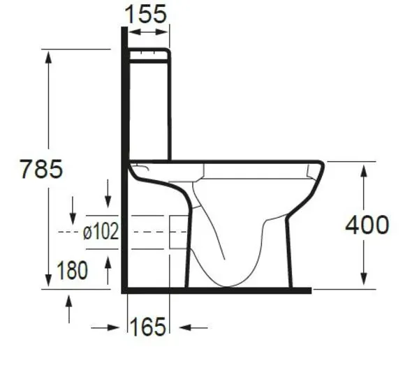 Cuvette sortie horizontale pour ensemble WC, avec réservoir , mécanisme de chasse poussoir , Abattant simple , fixations dissimulées