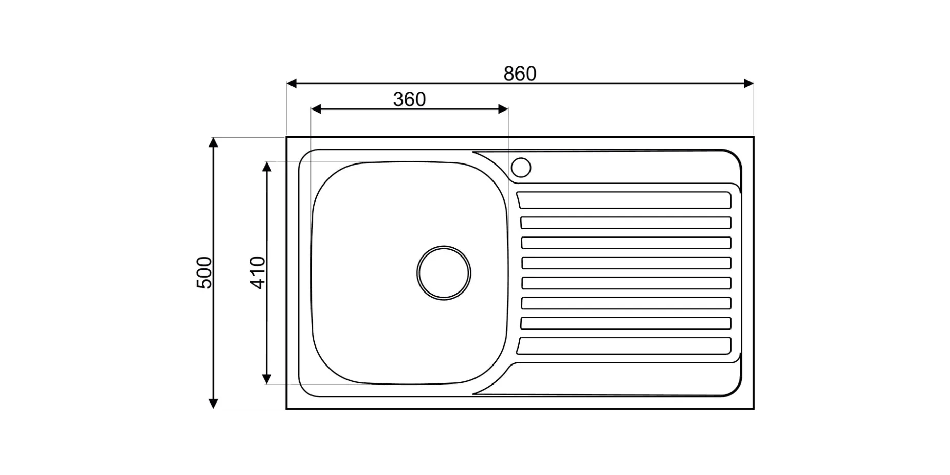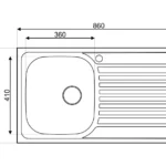 Evier inox roco style avec egouttoir 860x500mm 1 bac plus siphon