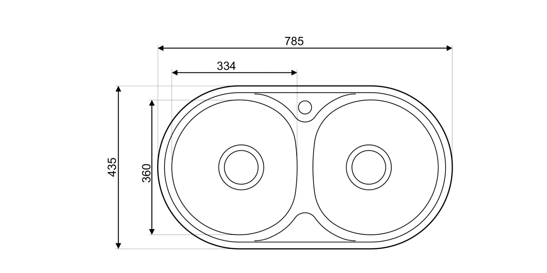 Evier inox roco style sans égouttoir 43.5×78.5mm 2 bac plus siphon