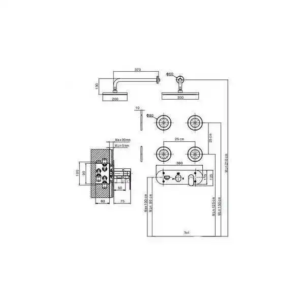 Fiche Technique : KIT MITIGEUR DE DOUCHE ENCASTRÉ AVEC HYDROMASSAGE 4 BUSES CYLINDRIQUES SFAX SOPAL
