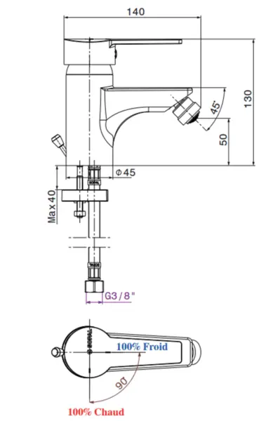 Fiche Technique : MITIGEUR DE BIDET DOUZ SOPAL