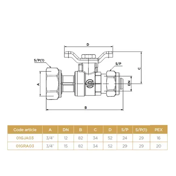VANNE SPHERIQUE 3/4 » ECROU LIBRE PEX16 SOPAL